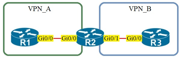Incorrect. VRF VPN_B would be used on the PE interface toward the CE that belongs to VPN_B (R2’s interface toward R3). There is no reason for R1’s Gi0/0 to be in VPN_B, and in standard L3VPN designs the CE does not place interfaces into provider VRFs at all.