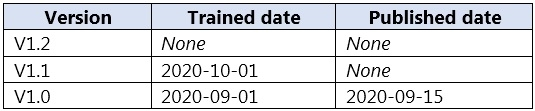 DRAG DROP - You plan to use a Language Understanding application named app1 that is deployed to a container. App1 was developed by using a Language Understanding authoring resource named lu1. App1 has the versions shown in the following table.