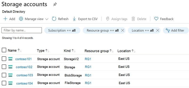 HOTSPOT - You have an Azure subscription that contains the storage accounts shown in the following exhibit.