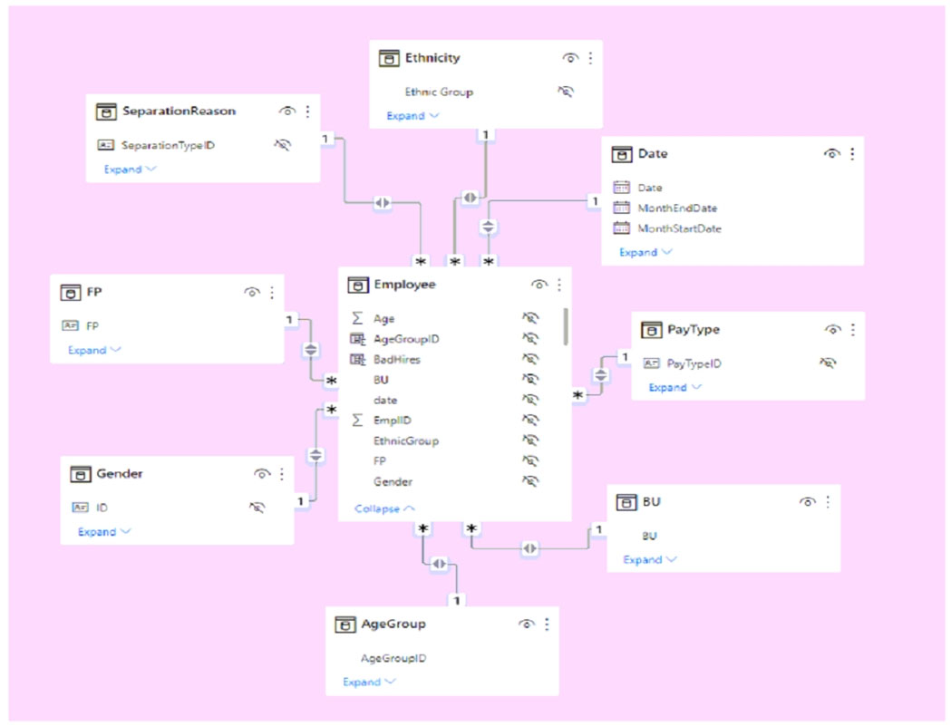 HOTSPOT - You have a Power BI imported dataset that contains the data model shown in the following exhibit.
