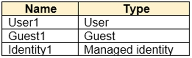 You have an Azure Active Directory (Azure AD) tenant that contains the objects shown in the following table.